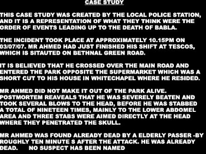 I got a call from an anonymous person suggesting to me that it could have been the result of a Gangland dispute, however the person did not say that this was definately the case, he did however tell me that Foysol was a known figure in the scene and wouldnt be surprised if he got the brunt of a deal gone sour.
